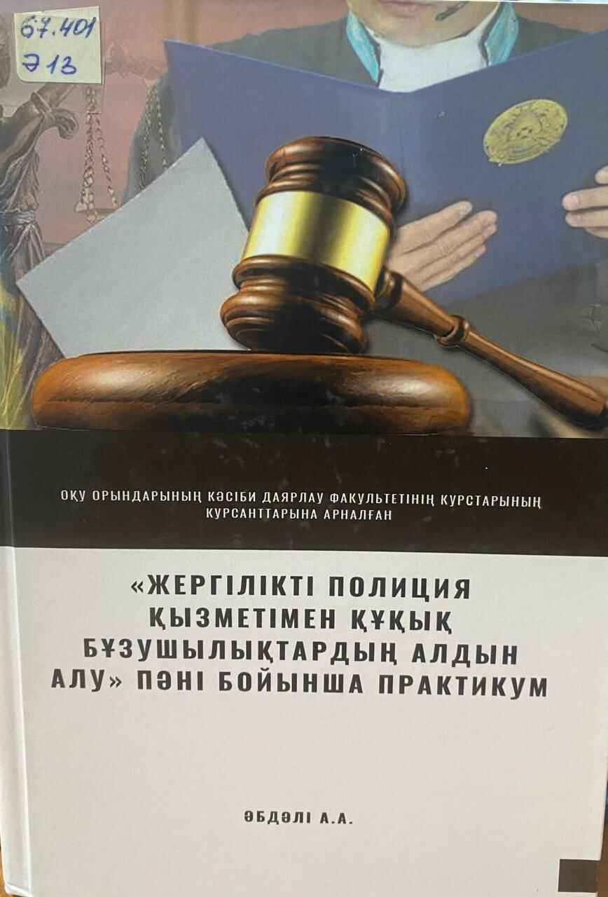 Название: Жергілікті полиция қызметімен құқық бұзушылықтардың алдын алу пәні бойынша практикум: Оқу құралы