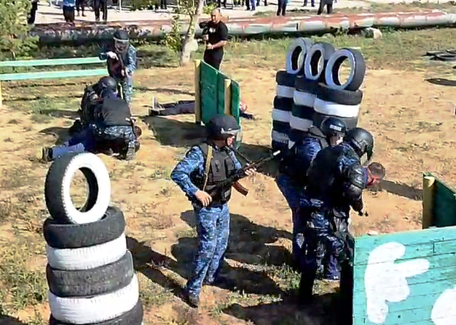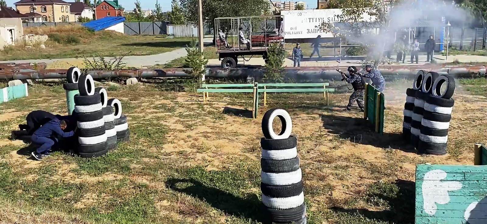 Учебный полигон «Тактический городок» оснащен необходимыми тактическими сооружениями и рубежами, манекенами на учебных местах: «Специальное транспортное средство для конвоирования подозреваемых, обвиняемых и осужденных», «Учебное место для тренировки навыков стрельбы из лазерного пистолета», «Учебное место для отработки навыков применения резиновой палки», «Учебное место для отработки навыков применения наручников», что способствует выработке навыков выполнения тактических действий, приближенные к боевой обстановке. На полигоне проводятся занятия по огневой и тактико-специальной подготовке. Отрабатываются приемы и тактические действия сотрудников ОВД по задержанию правонарушителей, способные формировать определенные двигательные умения и навыки профессионально-прикладной направленности. Занятия на полигоне проводятся в форме ролевых игр, что позволяет обучающимся не только закреплять получаемые теоретические знания, но и отрабатывать алгоритм навыков действийсотрудников ОВД со специальными средствами и оружием в решении оперативно-служебных задач.